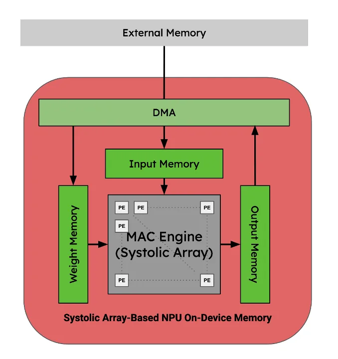 Figure 8. Memory hierarchy for a MAC acceleration systolic array NPU. Image by Author.